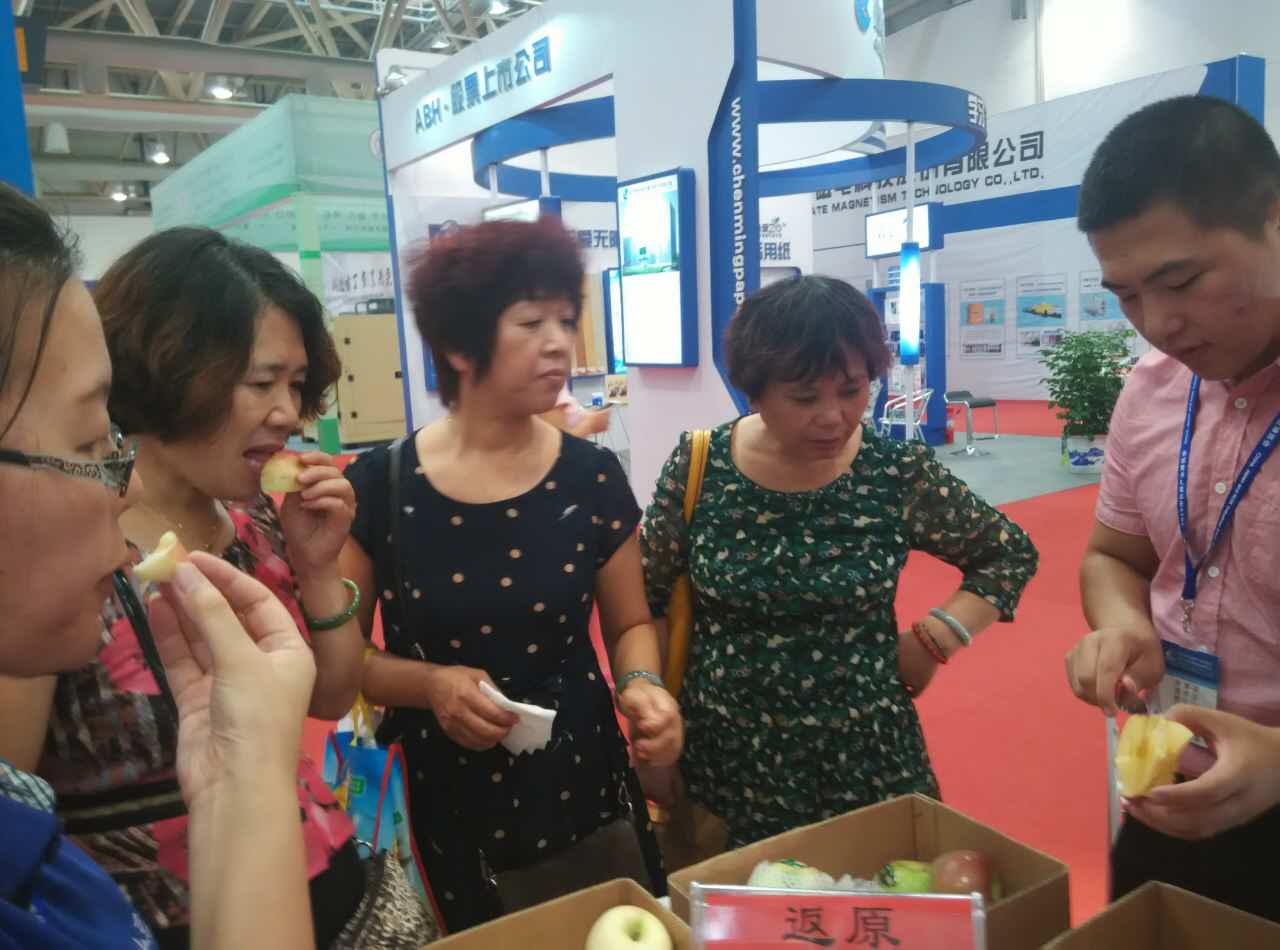 参展客商现场品尝乳山苹果和新泰苹果并参与扫码活动