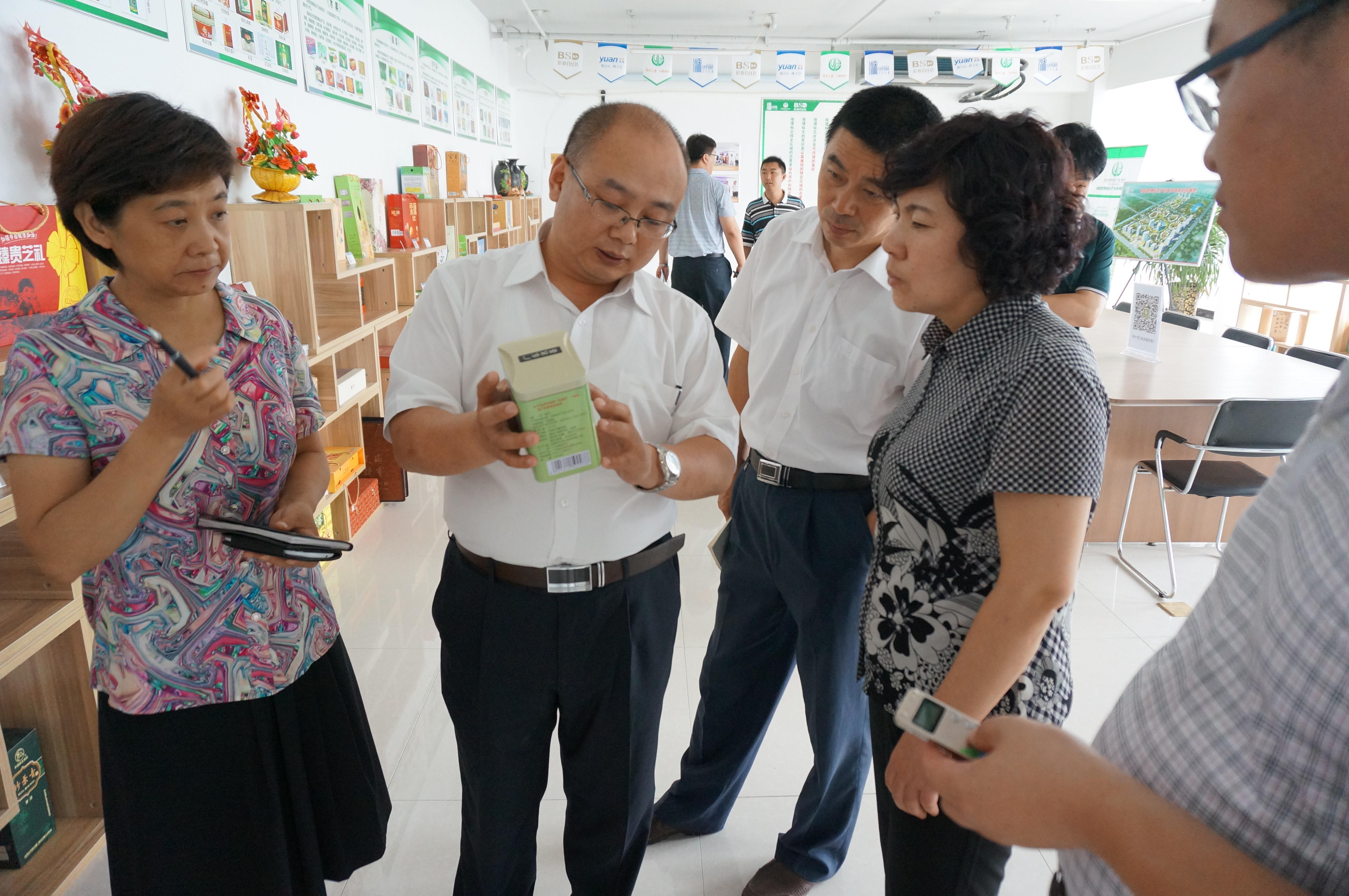 曹总向马主任一行介绍地理标志产品商标及产品优势