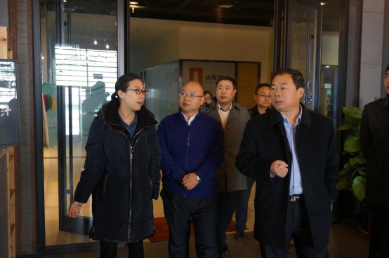 曹成坤总经理为来访领导介绍电商产业园整体情况