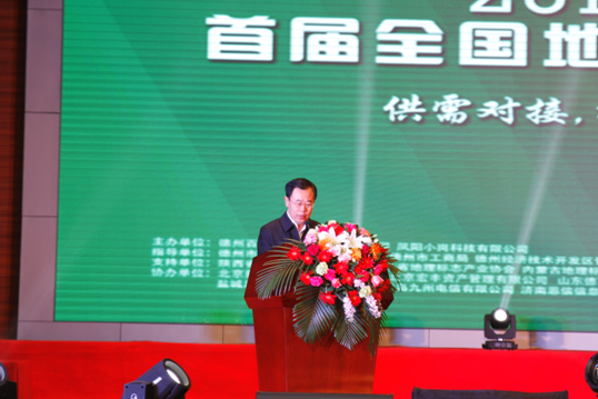 大会邀请到德州市人民政府商怀君副市长、中国中小商业企业协会地理标志产品专业委员会陈双来副会长、北京新发地农产品电子交易中心赵志刚副总经理出席并致辞,市商务局王健局长、市农业局李俊泉副局长、市工商局滕国俊副局长、德州经济技术开发区岳红星副主任、陕西省地标行业协会武晋仓会长、山东省地标行业协会孙明香会长等领导出席活动。