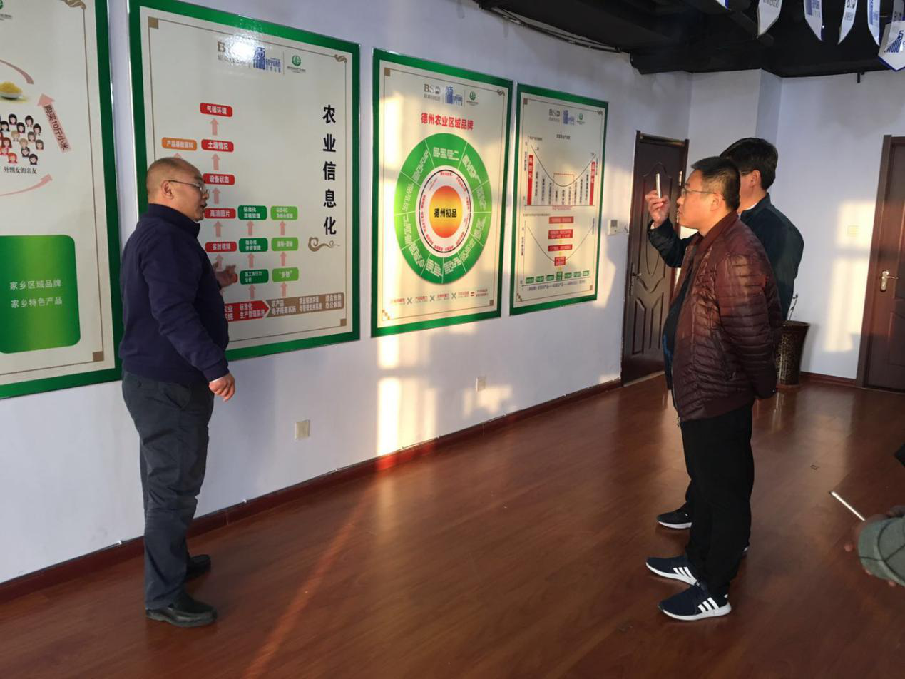 下午总经理曹成坤接待徐主任一行先后参观了德州智慧农业展厅、全国县域区域公共品牌展厅、全国地理标志产品产业展厅及大学生创新创业基地。详细介绍了公司自2013年落地德州以来,从地理标志产品产业切入打造品牌农业,提升农产品附加值、提升农业供应水平的发展历程以及在农产品品牌培育、农业信息化及标准化、农产品区域电商平台方面的服务案例和成果。领导一行对公司在区域公共品牌及推动农业供给侧改革方面做出的努力给予了肯定和认可。