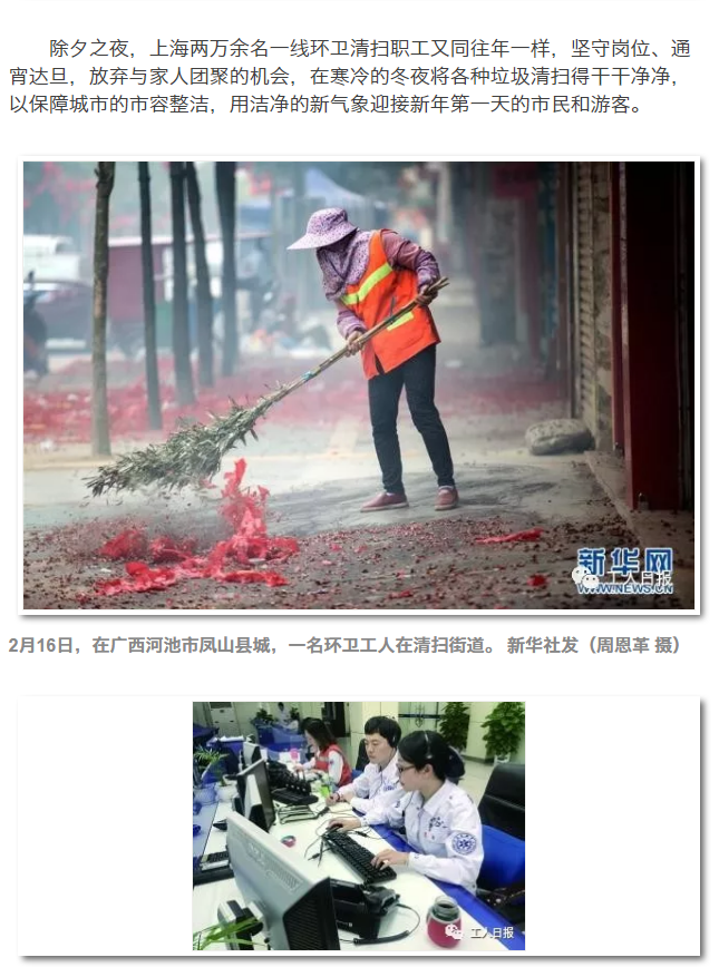 万家团聚时,你可曾想过,交警仍在用职责和使命,保障出行的畅通;医生护士仍在用坚守与爱心,守护生命的安全;环卫工人仍在辛勤劳动,保障人民生活的清洁……他们在平凡的岗位,完成不平凡的坚守!