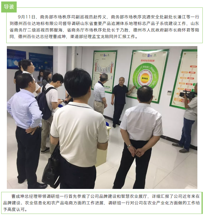 商务部市场秩序司副巡视员赵传义一行到德州百仕达调研
