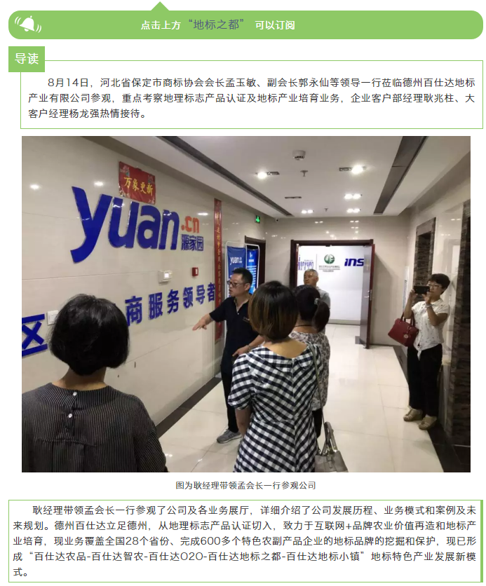河北省保定市商标协会领导一行莅临德州百仕达参观