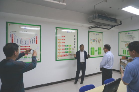 李瑞兆带领马镇长一行参观了公司,详细介绍了公司发展历程、业务模式和未来规划。在智慧农业展厅,李总向马镇长一行介绍了公司业务理念,从地理标志产品认证切入,通过品牌化和科技化打造品牌农业,提升农产品附加值,提高农业供应水平。
