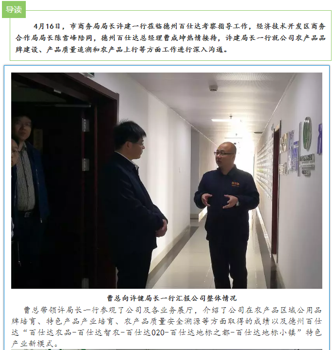 德州市商务局许健局长一行莅临德州百仕达 考察指导工作