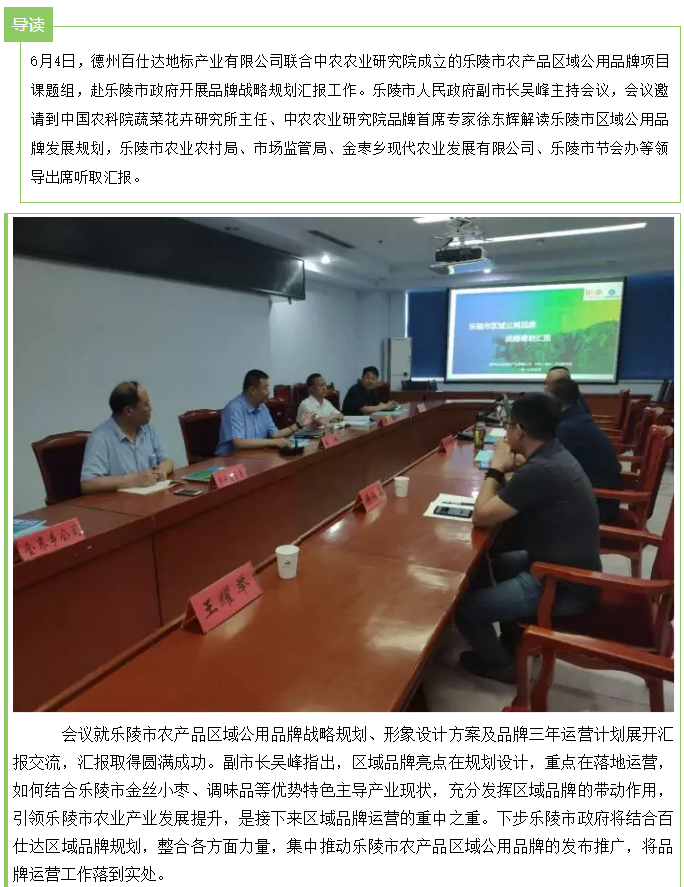 乐陵市农产品区域公用品牌战略规划汇报会顺利召开
