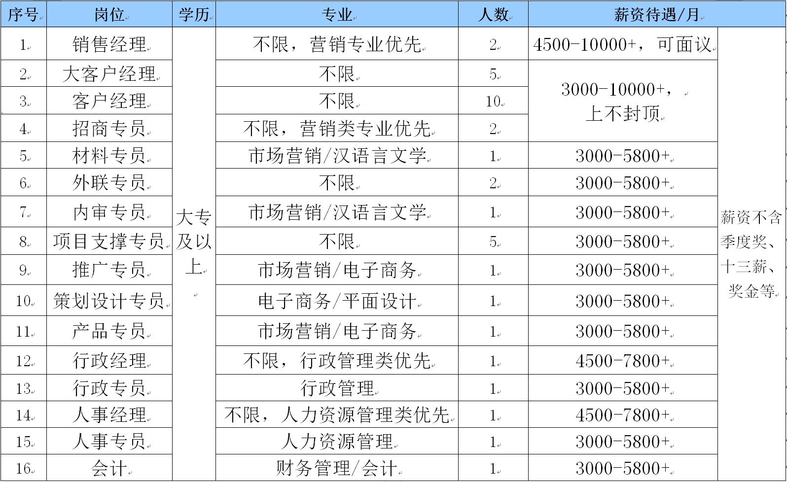 有市场竞争力的薪酬体系:高底薪、高提成,十三薪、季度奖金、年度管理分红... ...