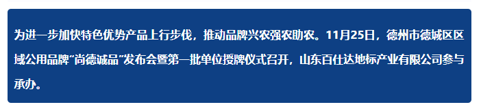 大会上山东百仕达地标产业有限公司总经理曹成坤受邀对“尚德诚品”区域公用品牌进行了解读,体现着德城区都市型特色和农旅产业。“尚德诚品”区域公用品牌的打造体现了德城区的农耕文化,自然生态和农耕精神,也是德城区品牌农业发展战略的核心。