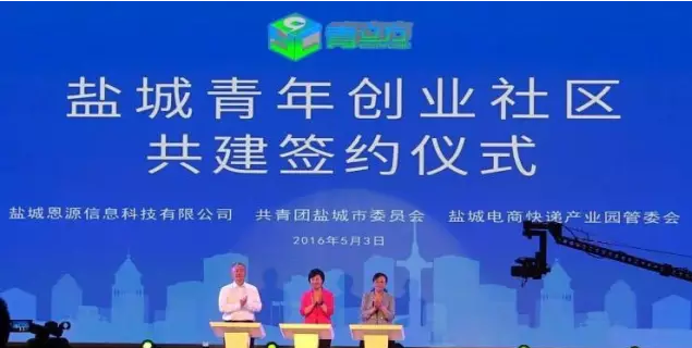 活动现场,共青团盐城市委员会、盐城电商快递产业园管委会及北京恩源科技有限公司三方签署了盐城青年创业社区共建协议,旨在为盐城“互联网+”创新创业提供专业有效的支撑。
