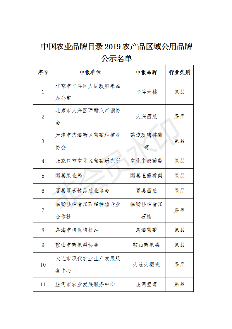 现予以公示,公示期为5个工作日,如有异议可向中国农产品市场协会农业品牌建设办公室反映。