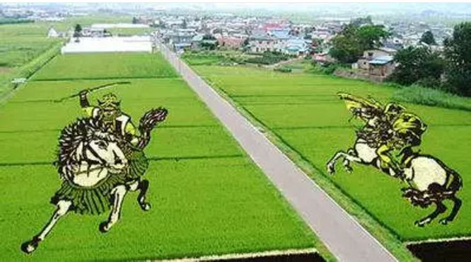 一个 2000多年水稻种植历史的古村,1993年为振兴农业,利用不同颜色、品种的水稻在15000平方米的田地上种出惊人的艺术作品;年游客量超过30万人次,带动了稻田艺术在日本各县的蔓延。每年4月艺术家设计图案,在不同区域做上记号,村民协作运用不同品种的稻子播种,5月开始稻田不断生长,图案逐渐显现,每年7月是最佳观赏季。