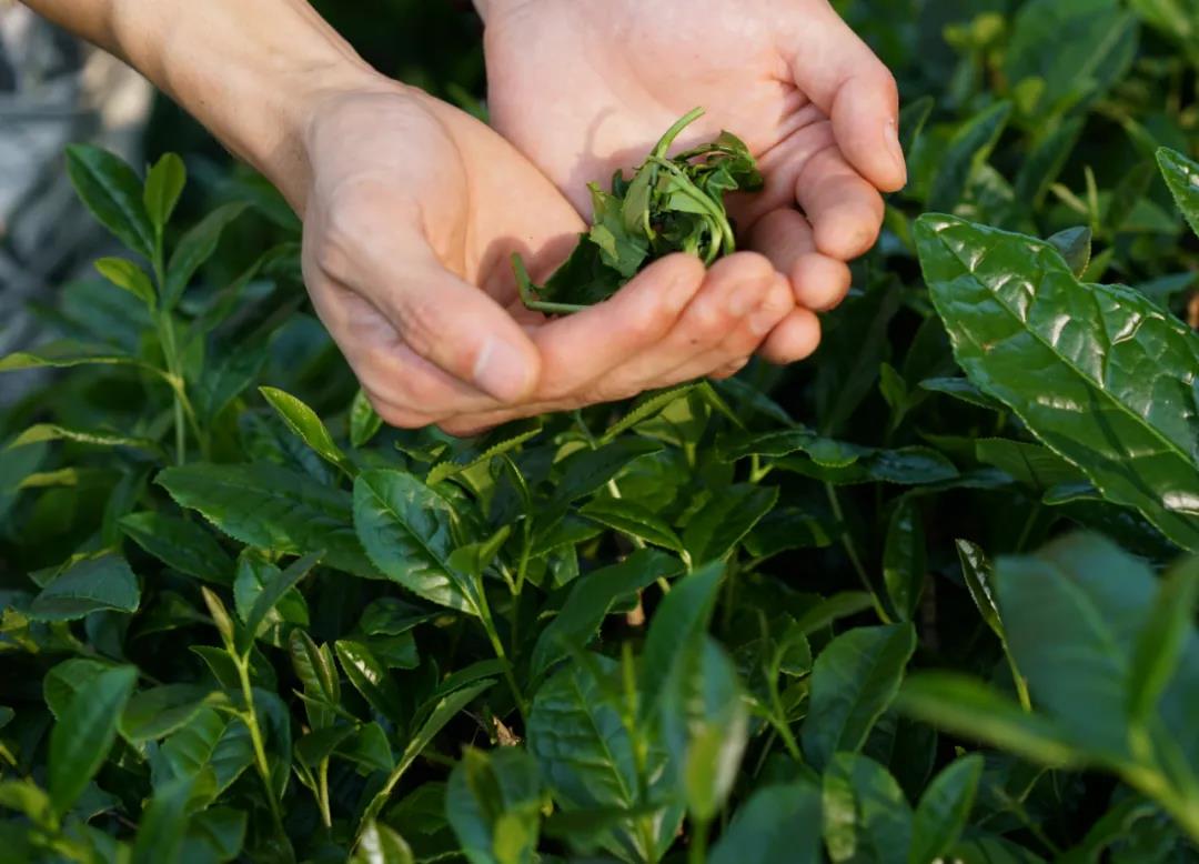 黄昏时,我们来到了这片茶园。茶叶肥壮厚实,在阳光的照射下散发生机。我摘下一片芽尖,在手中搓揉,茶香浓郁,明显有没有掺杂工业化肥的气息。斜阳筛向茶田的一片吉光中,我突然想起1892年到过川西的日本人冈仓天心在《茶之书》中所说的一段话: