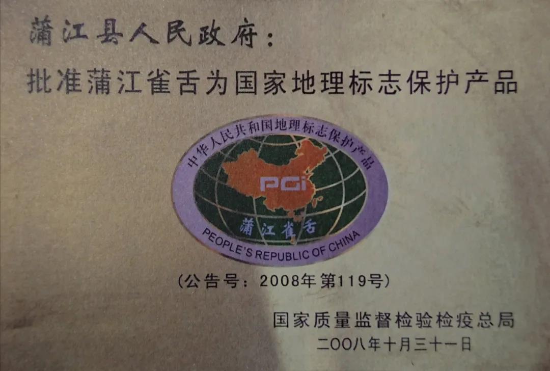 曾程耀介绍道,在漫长的蒲江制茶史中,“雀舌”实际上是一款相对年轻的茶。这款茶是蒲江的特色产品,在2008年获得国家地理标识保护产品称号,凭借其优良的品质多次获奖。“雀舌”二字最早来源于古代民间的斗茶比赛,口口相传,以此得名,但当时指的是茶的原料——茶青,过往的历史之中并没有哪一款茶叫“雀舌”。蒲江雀舌的外形像是小雀的舌头,依据制作工艺分为红雀舌和绿雀舌。只要符合“雀舌”的外形,每种茶的茶青都可以用来制作雀舌。而现在为蒲江雀舌提供的茶青主要来自于9号茶。这种由四川农大所培育出的老川茶的改良品种,最大优势在于上市时间早于其他绿茶,市场决定了9号茶作为雀舌的茶青地位。