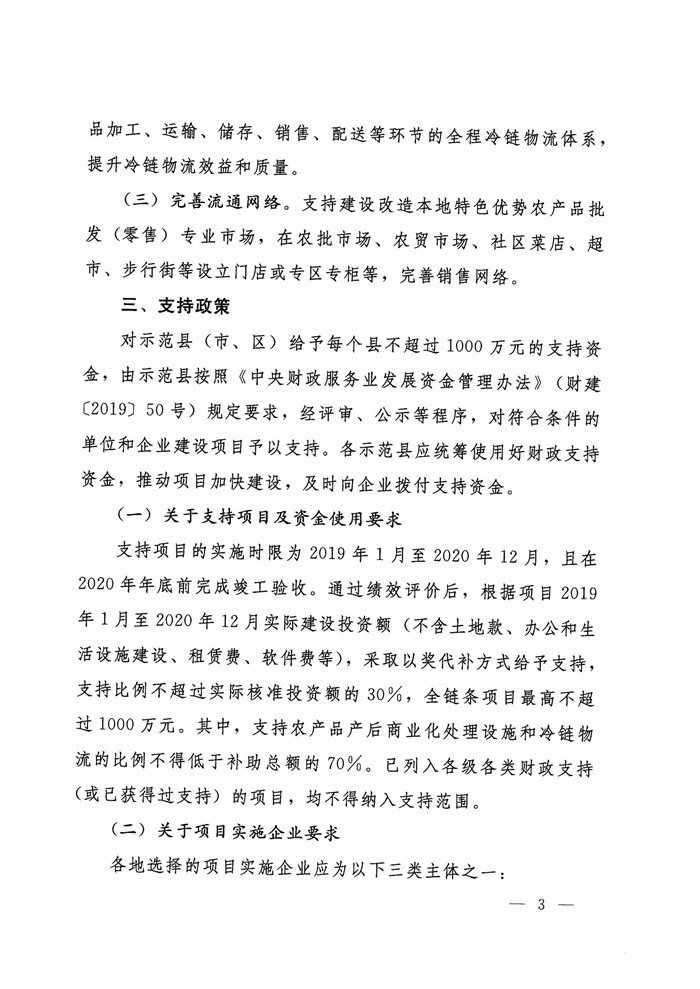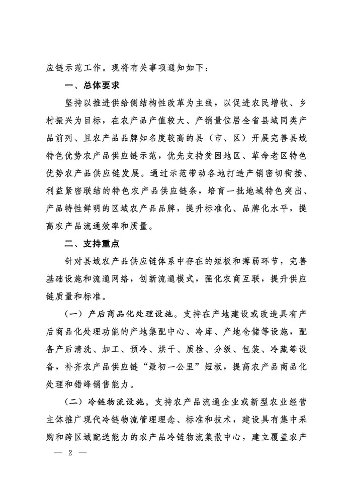 关于开展完善县域特色优势农产品供应链示范工作的通知