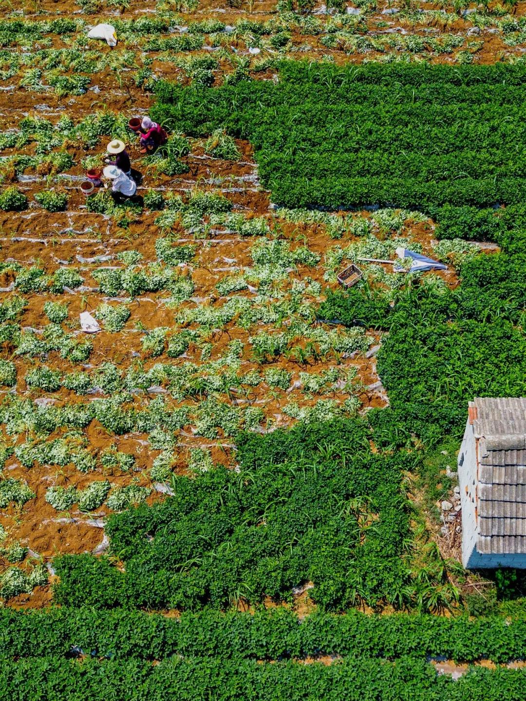 ▲ 广州市增城小楼镇小孩在开心地收土豆。