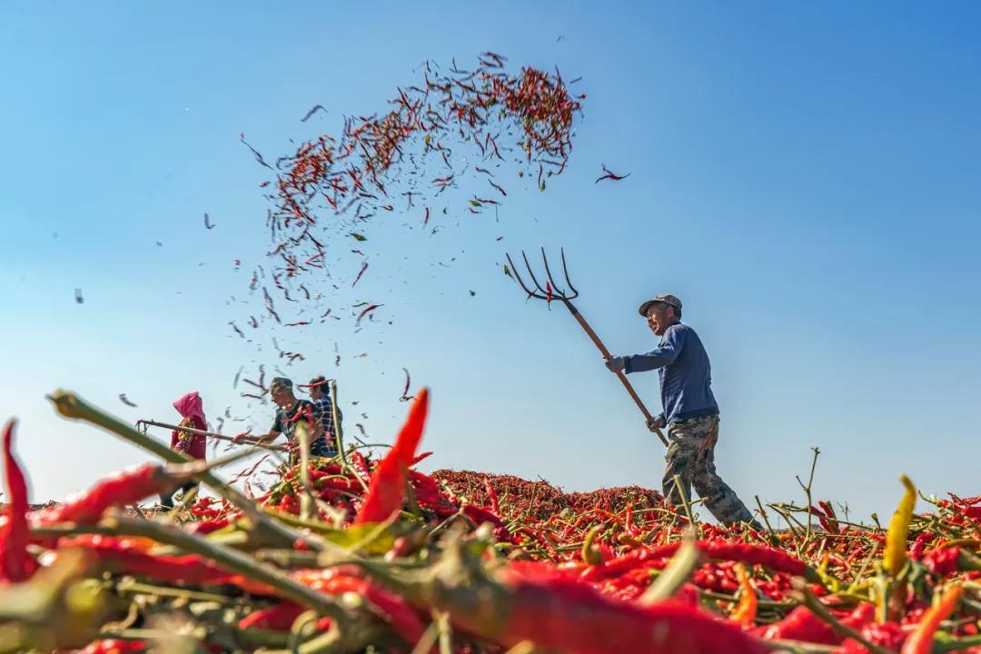 ▲ 陕西宝鸡市陇县农家院的辣椒丰收图景。