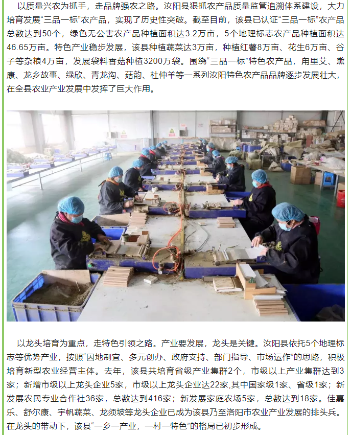 汝阳:积极打造特色农业品牌促特色农业健康发展