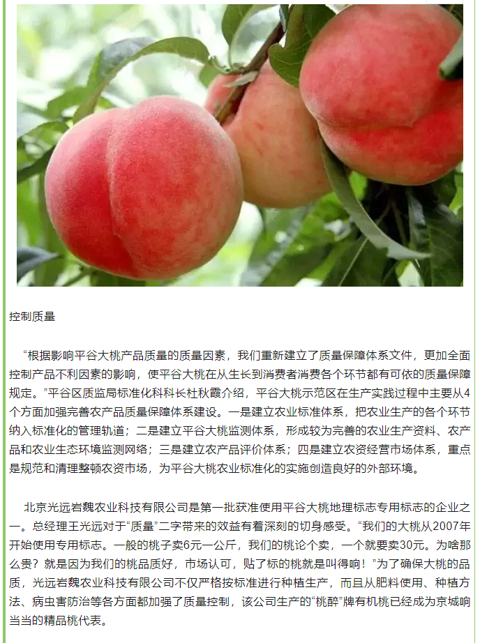 平谷大桃建设地理标志产品保护体系