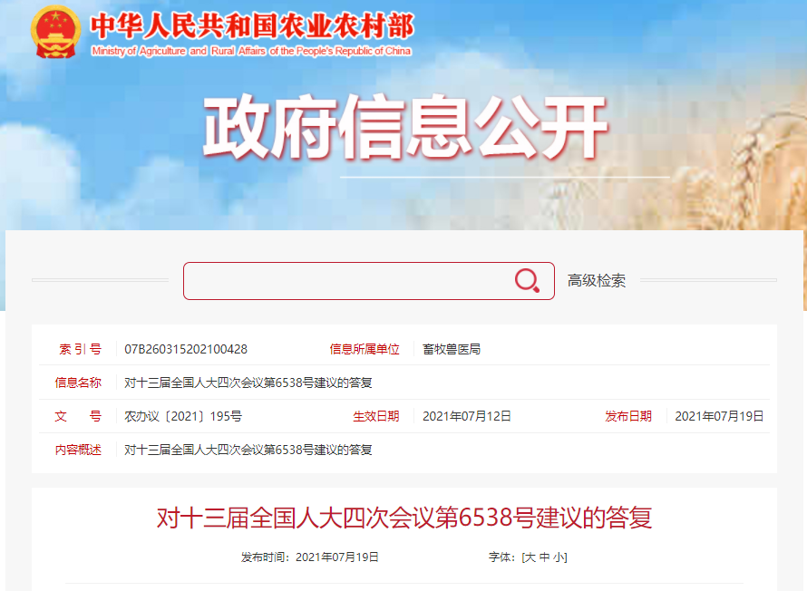 农业农村部2021年7月12日