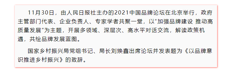 在新发展阶段,高质量推进乡村振兴,需要深化品牌理念,把品牌意识转化为高质量发展的工作要求,贯穿于乡村振兴的全过程。国家乡村振兴局将坚持“守底线、抓衔接、促振兴”的工作主基调,高质量推动巩固拓展脱贫攻坚成果上水平,高质量推进乡村振兴开新局。