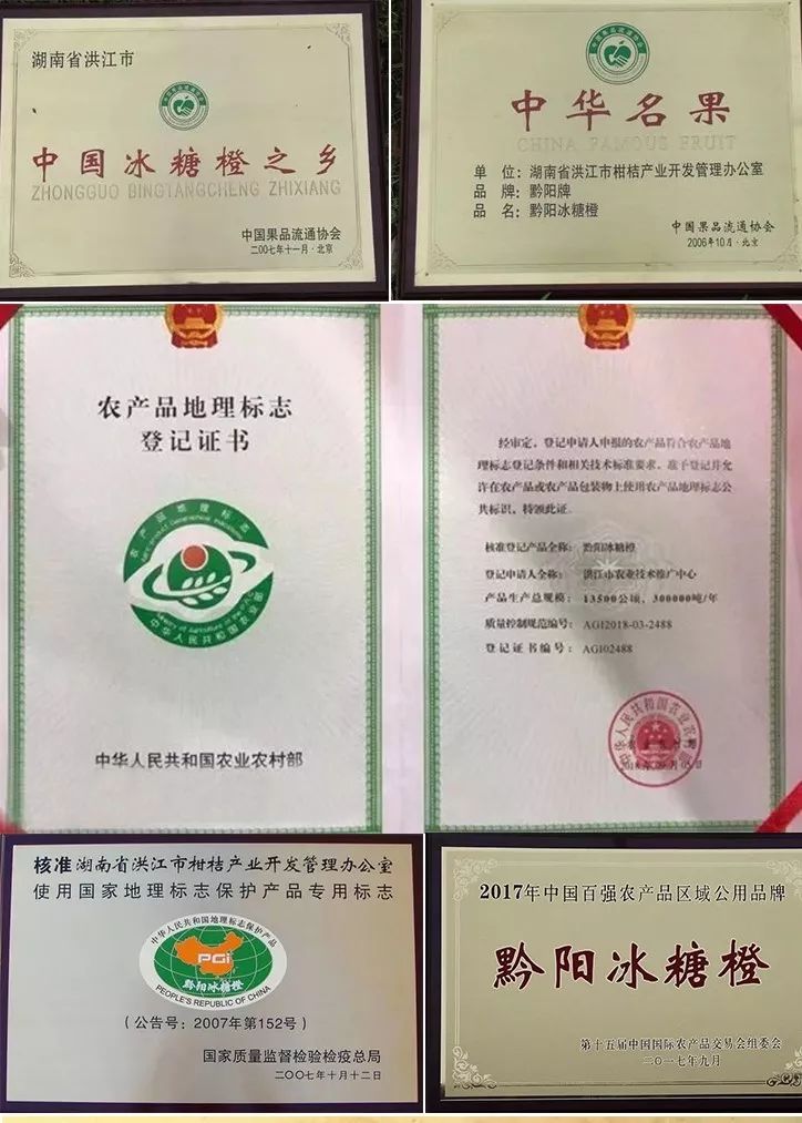 要说为啥,先来看看那些年黔阳冰糖橙获过的奖吧。