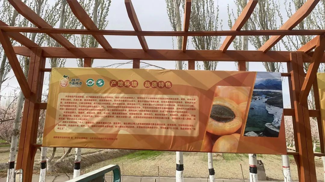 在疏附县塔什米里克乡、铁日木乡核心生产区打造疏附木亚格杏地理标志农产品展示示范点,建设20米长信息长廊和标识牌,展示地理标志农产品品牌故事。