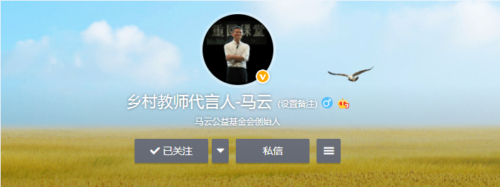 2018年9月10日,马云在教师节当天宣布卸任阿里巴巴董事局主席,从此当一名乡村教师,只关心慈善和教育。在微博上,他的唯一认证身份也是“乡村教师代言人”。这与他的乡村教师情结密不可分。