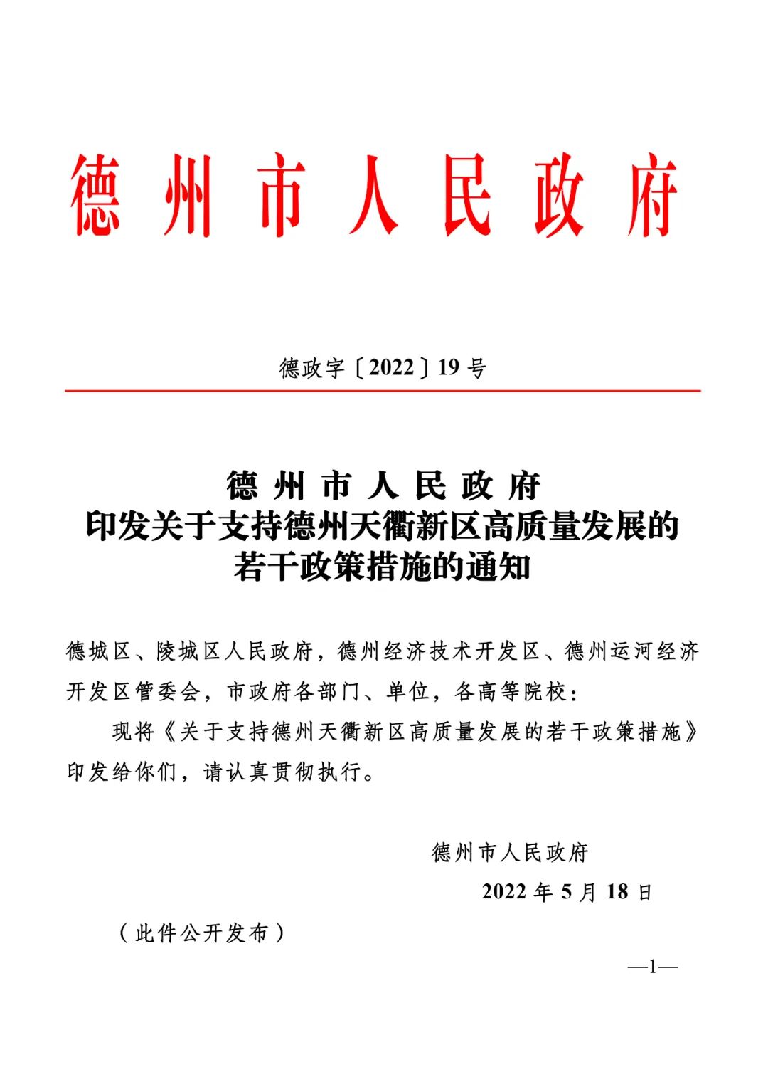 日前,德州市人民政府印发关于支持德州天衢新区高质量发展的若干政策措施的通知,细化工作部署,落实政策措施,举全市之力建设天衢新区。